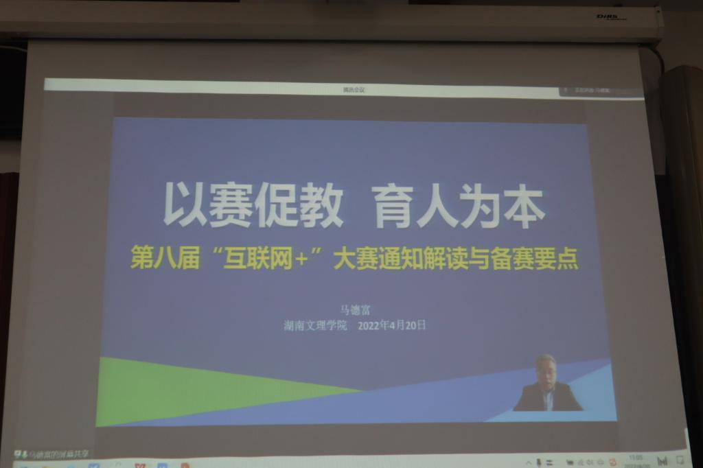 马德富老师为我校师生做“以赛促教 育人为本---第八届‘互联网+’大赛通知解读及备赛要点”的专题报告。他从“双创大赛篇—第八届大赛要点解读”“双创项目篇—优秀创新创业项目培育”“双创教育篇—开启双创教育改革新征程”三个篇章,为大家讲解了本届大赛备赛的9大要点、适合我校申报的三大赛道项目培育的注意事项以及双创教育要建设的“七个一工程”,并用“回归教育、引领教育、育人为本、‘四新’融合、真创实创”对本届大赛及双创教育进行了总结,让参会师生明确了新时代创新创业教育的发展方向,使大家受益匪浅。