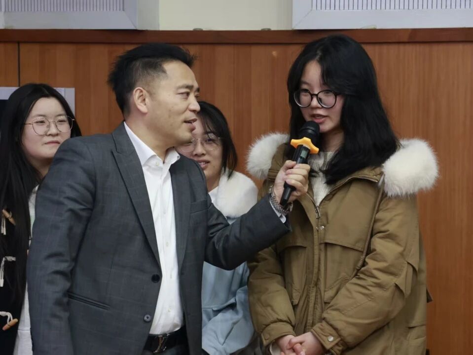 互动交流环节中,同学们踊跃举手、积极提问,围绕专业学习、实习实践、未来发展、行业趋势等内容与企业家深入交流。嘉宾耐心细致、深入浅出地逐一解答,用自身经历为同学们拨开迷茫、指点方向,让大家在面对面交流中收获知识、开阔眼界、坚定信心。