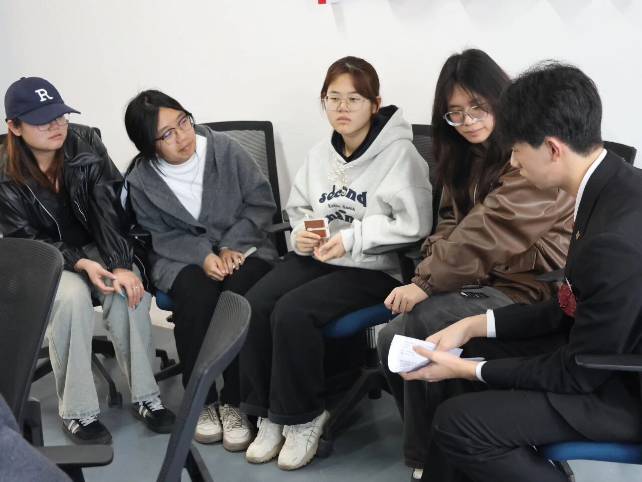 创业导师深入各交流小组进行指导,结合小组实际需求精准答疑、定向赋能,帮助同学们厘清模糊思路、明晰项目方向,有效推动创新创业构想落地成型。参与交流的学生感言:“在与导师和小伙伴的交流探讨中,我对创新创业形成了基本认知,也为今后主动探寻实践机遇、投身创新创业奠定了基础。”